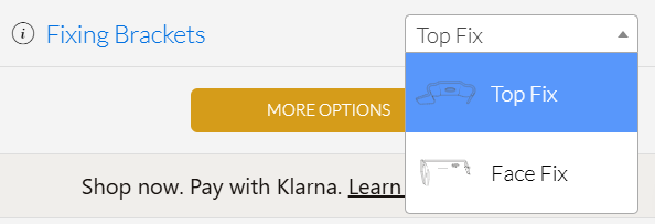 Some of our brackets are universal, which means they can be used for either top fix or face fixing however some ranges do ask you to choose when on the ordering page: